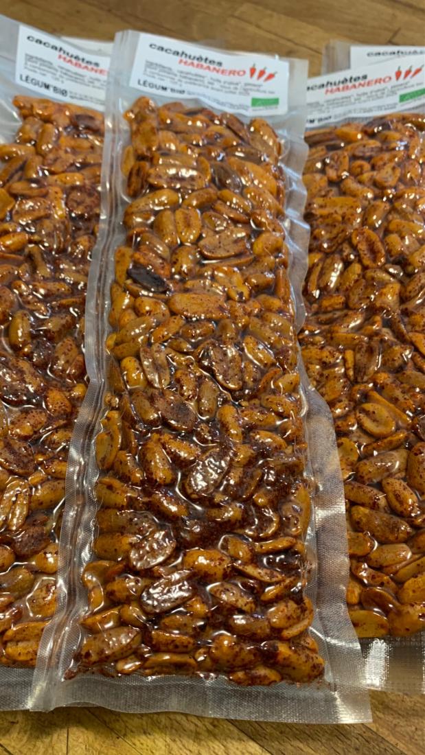 Cacahuètes torréfiées et salées, enrobées d'un mélange de piments dont une pointe de piment scorpion !